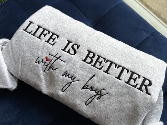 Life Is Better With My Boys Embroidered Sweatshirt