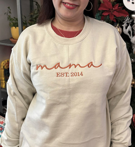 Mama Embroidered Crewneck or Hooded Sweatshirt